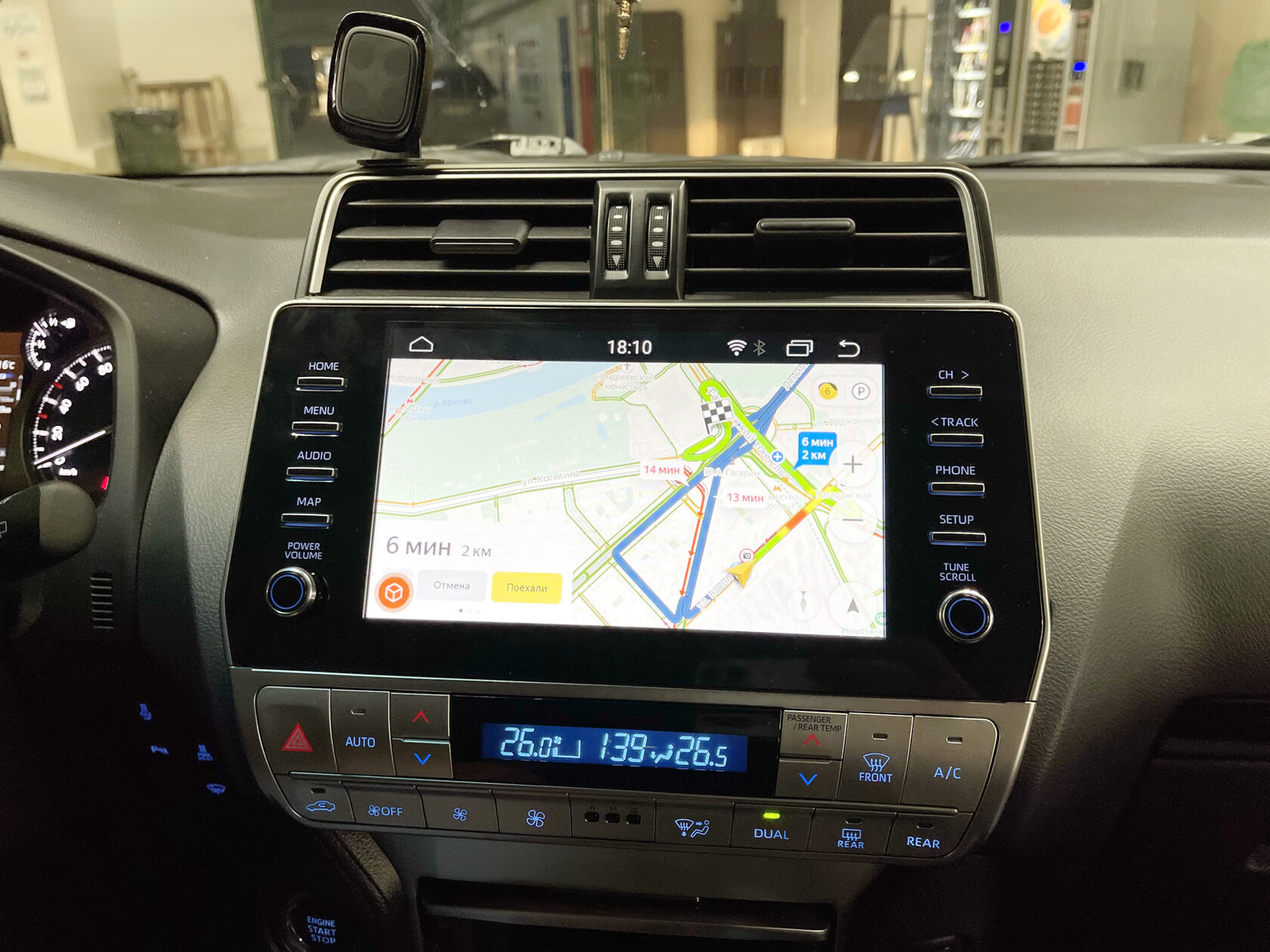 После установки Android‑блока штатный экран Toyota Prado превращается в полноценный планшет с любимыми приложениями и онлайн‑сервисами: