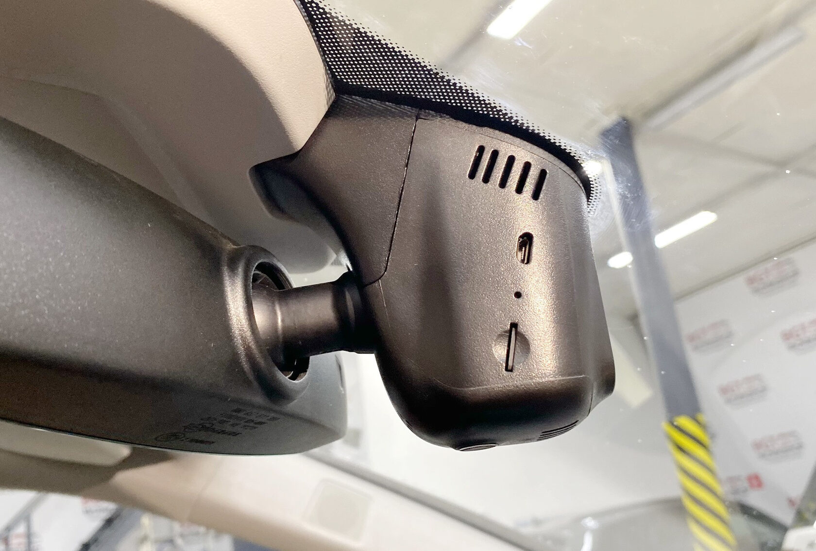 - Абсолютно заводской вид: Регистратор полностью сливается с интерьером. Со стороны его невозможно заметить — ни с улицы, ни из салона.
