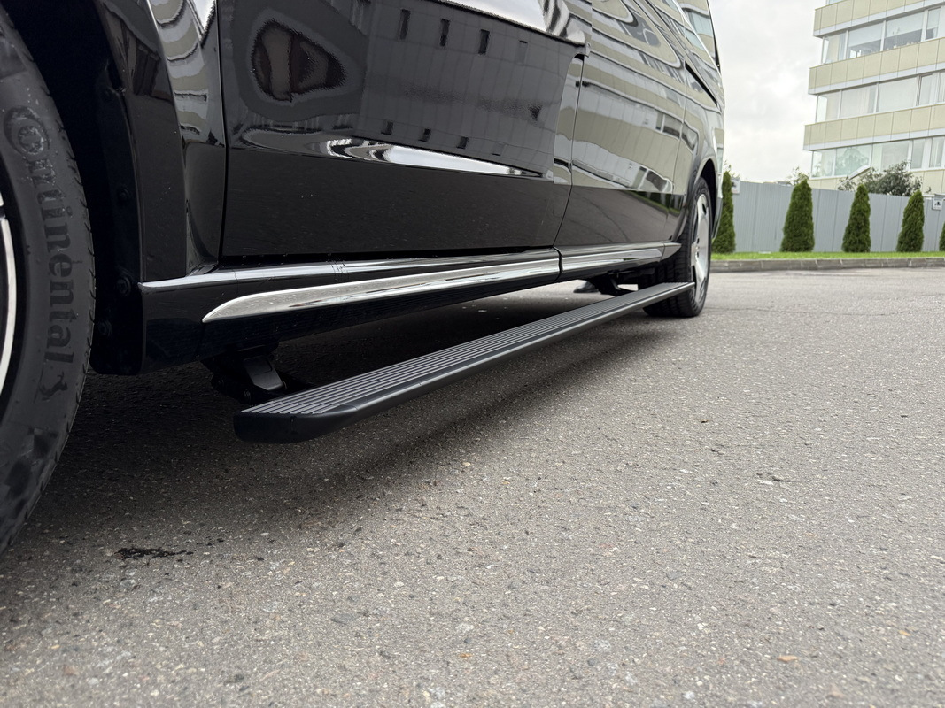 Главное преимущество наших порогов — их абсолютная незаметность. В сложенном состоянии они полностью скрыты под кузовом, ни на миллиметр не нарушая чистые линии и заводской дизайн вашего V-Class. Но стоит вам открыть дверь, как плавно и бесшумно выезжает широкая и удобная ступень, обеспечивая легкий и безопасный доступ в салон.