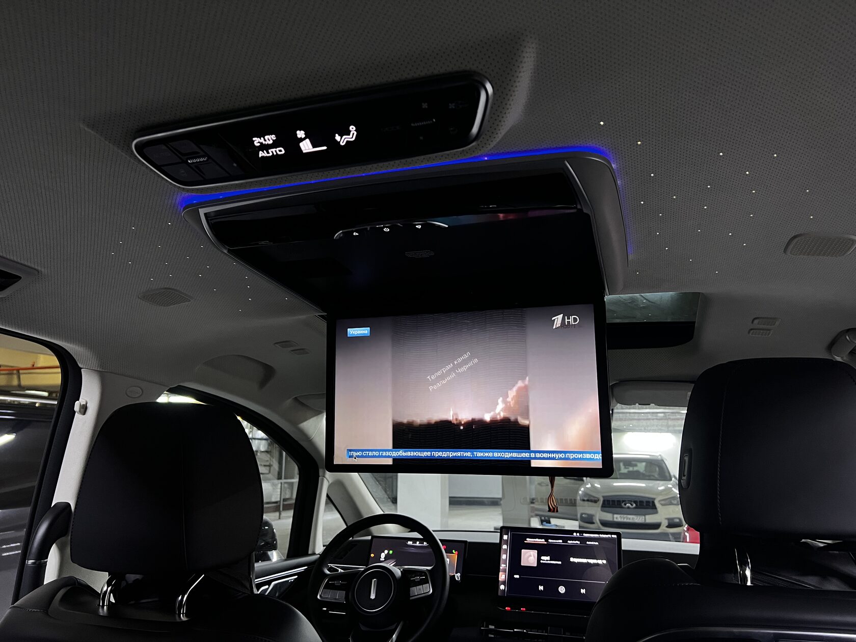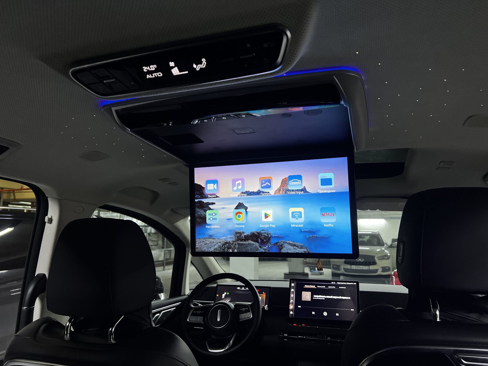 - Атмосферная контурная подсветка: Встроенная светодиодная подсветка по периметру монитора создает в салоне уютную и стильную атмосферу, особенно в темное время суток. Цвет и яркость можно настроить по вашему желанию.