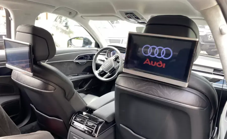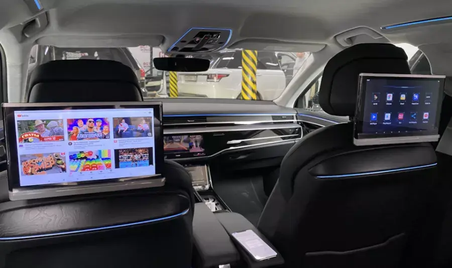 Это не просто планшеты на универсальных держателях. Мы устанавливаем полноценные Android-устройства премиум-класса с большими сенсорными экранами (диагональю до 13.3 дюймов), которые элегантно крепятся на спинки передних сидений. Они выглядят как дорогая заводская опция и идеально вписываются в эстетику салона Audi.