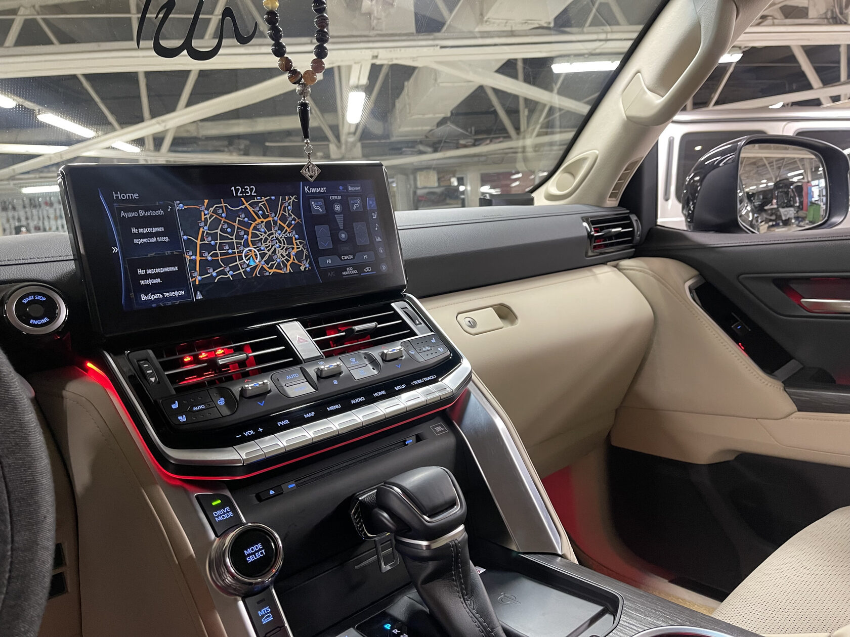 - Центральная консоль и тоннель: Эффектное выделение ключевых элементов управления.
